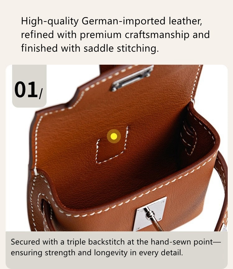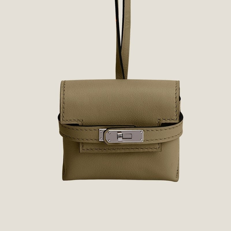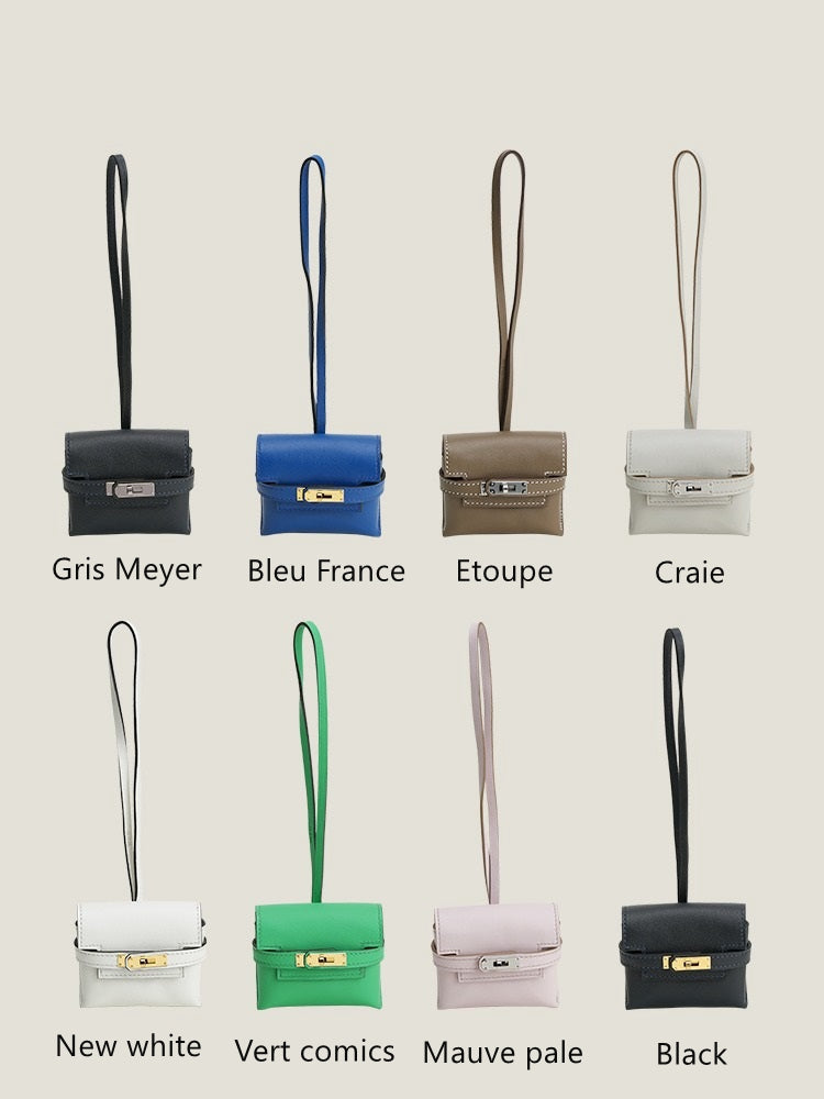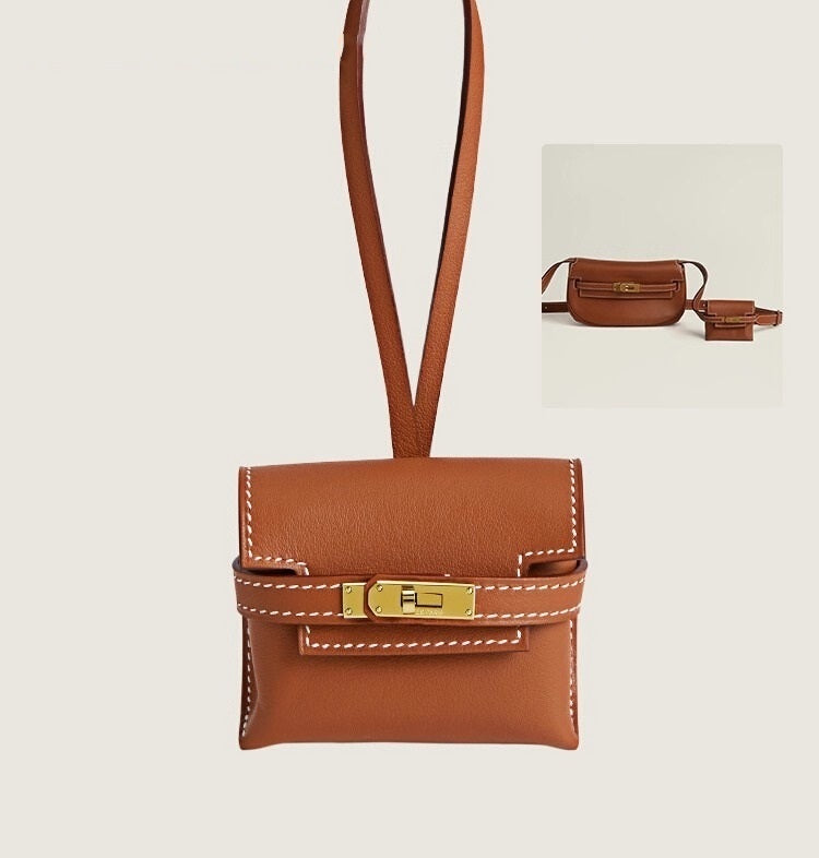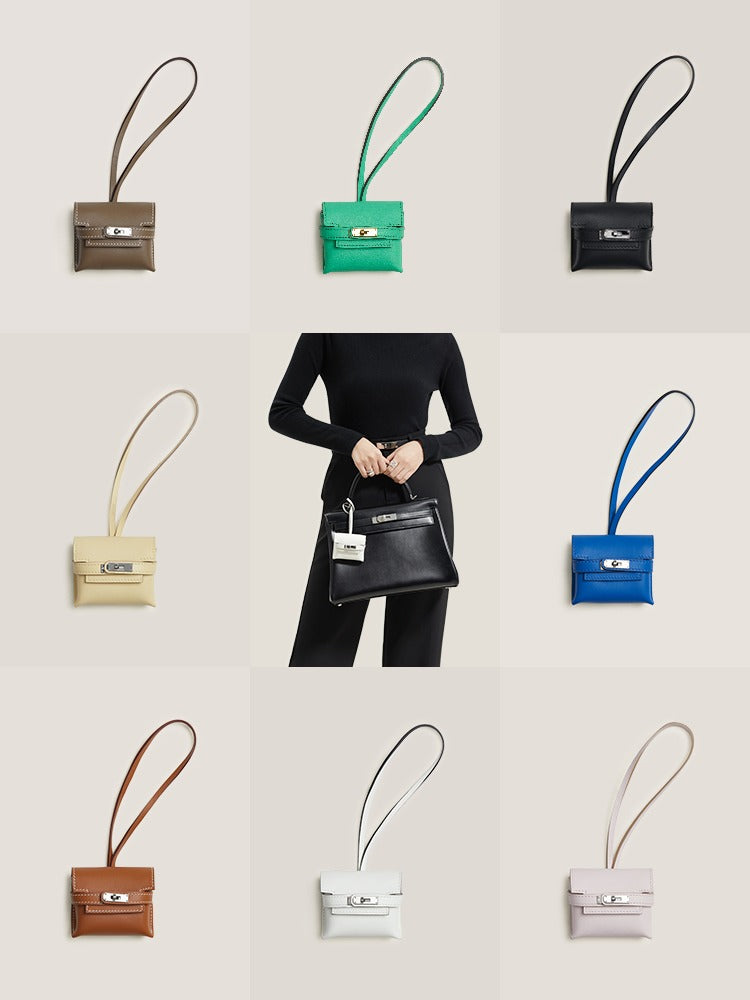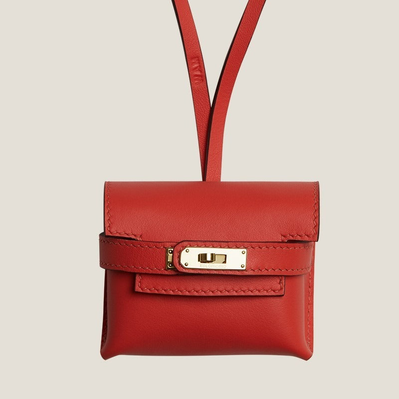 Kelly bag charm in swift calfskin, sheepskin leather, crocodile leather.