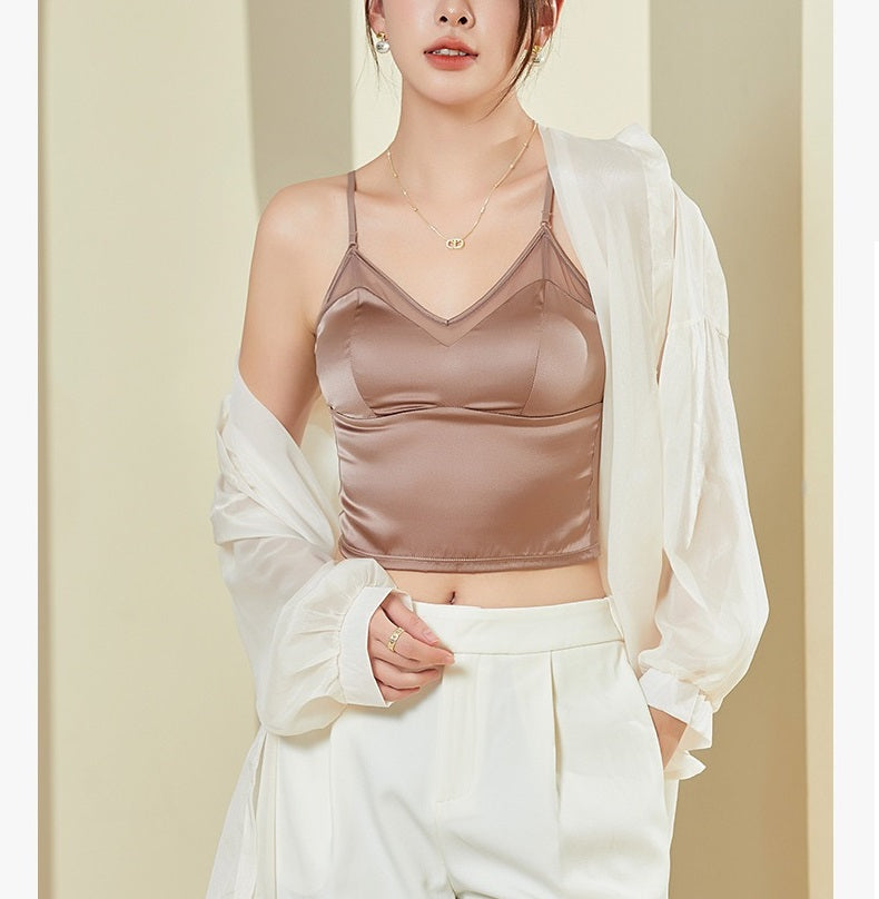 2024 NEW IN! Women Silk Camisole Bra. You can wear it as a camisole, or as a inner.