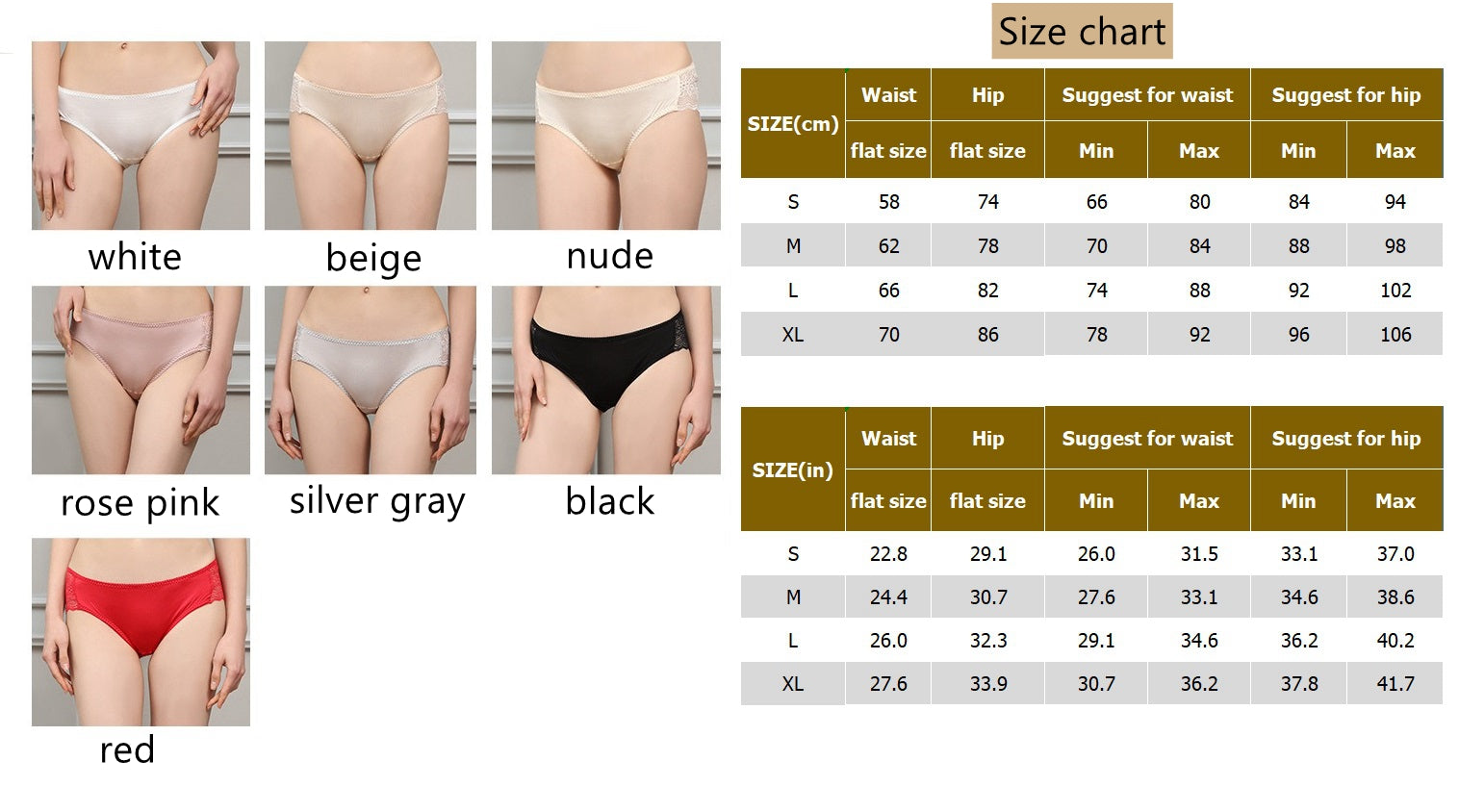 🌸 The pantie is made of 100% mulberry silk & lace, super soft, lightweight, and comfortable for all-day wearing, you can even not feel it. Mulberry silk contains 18 amino acids and collagen that may be directly absorbed into the skin.